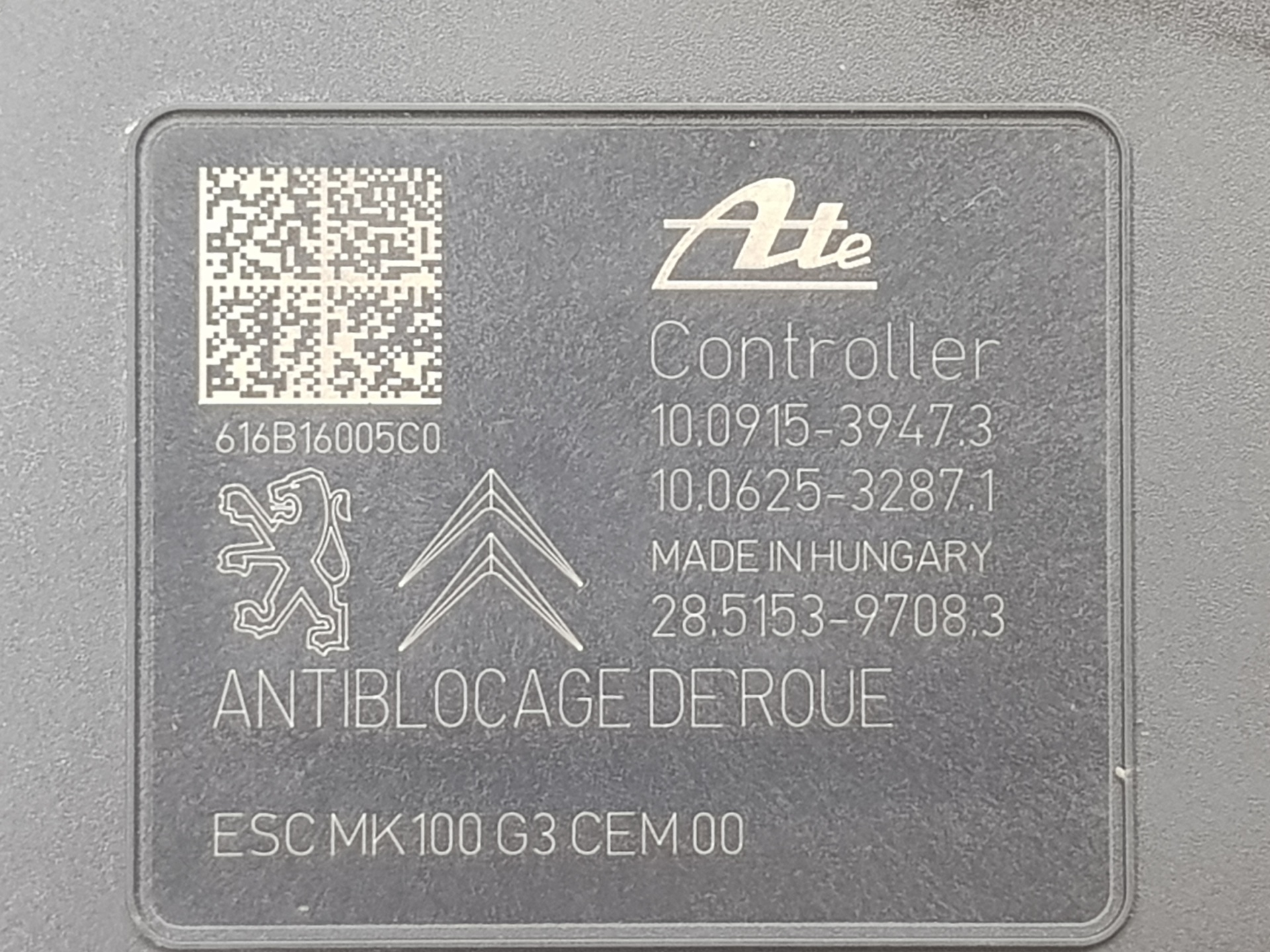 ABS CITROEN C-ELYSÉE 1616784380 | 1616784380 Referencia TELEPECAS: 6937955 15 Mai 2020 |