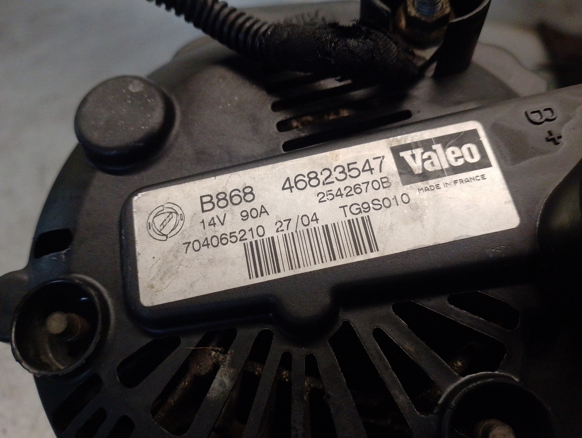 ALTERNADOR LANCIA YPSILON (101) 46823547 | 2542670B | VALEO Referencia TELEPECAS: 12139496 11 Jul 2023 |