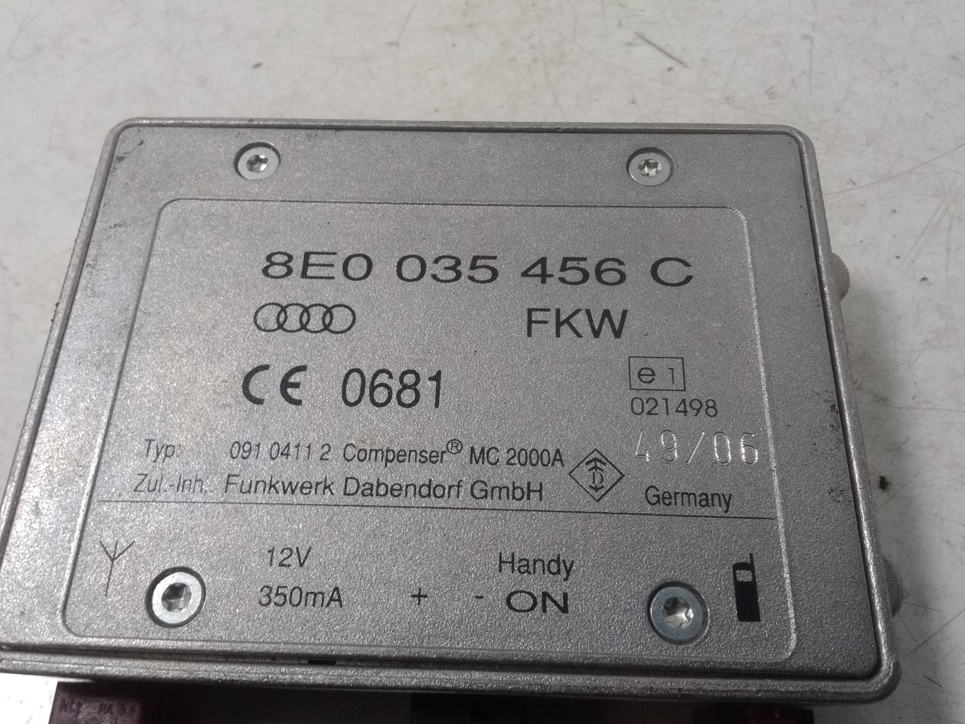 ANTENA AUDI TT 8E0035456C Referencia TELEPECAS: 11323273 27 Mar 2024 |