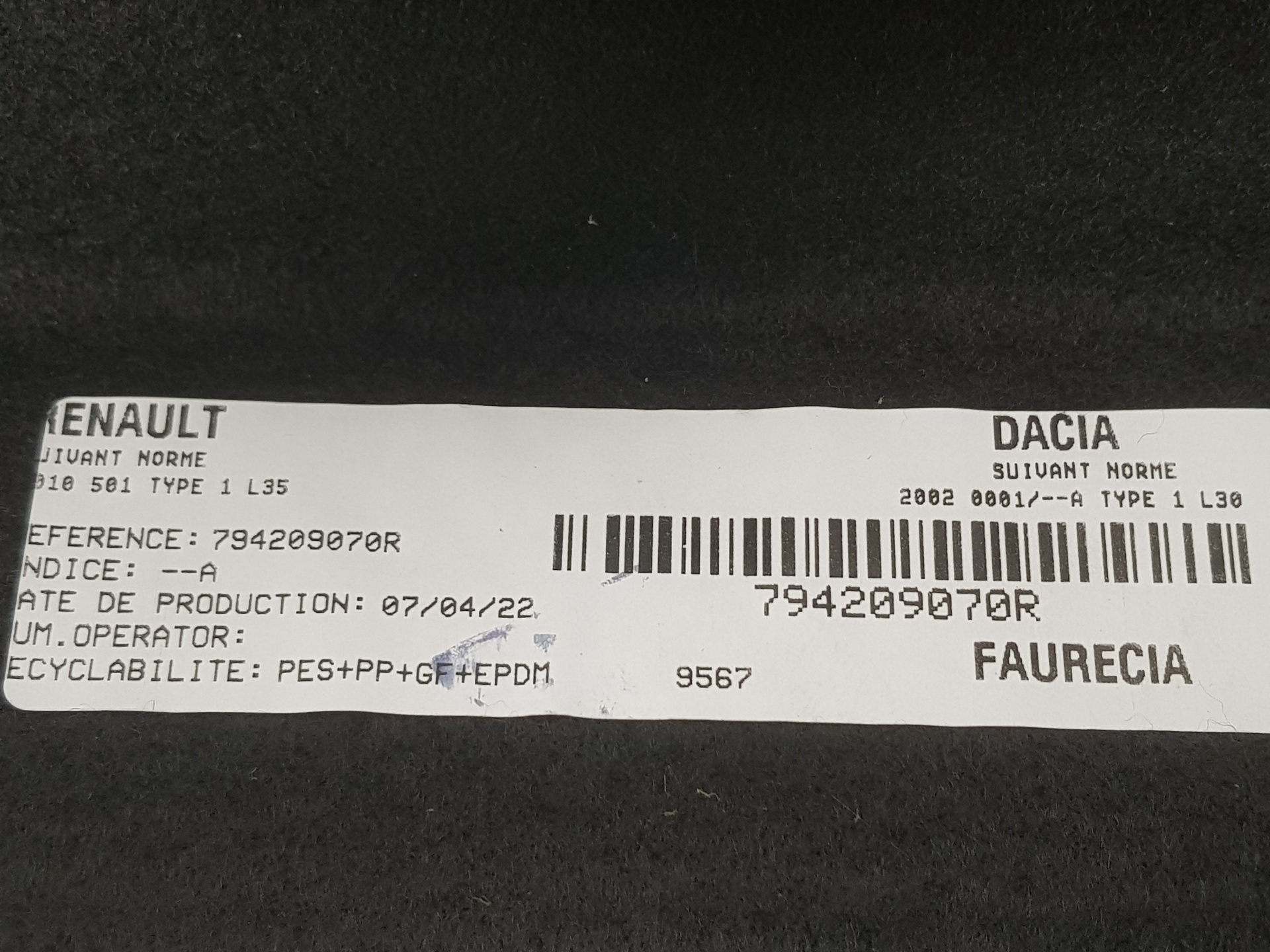 BANDEJA TRASERA DACIA DUSTER II 794209070R | MATERIAL | NUEVO Referencia TELEPECAS: 6792476 ID Stock: 1851117 23 Nov 2022 |