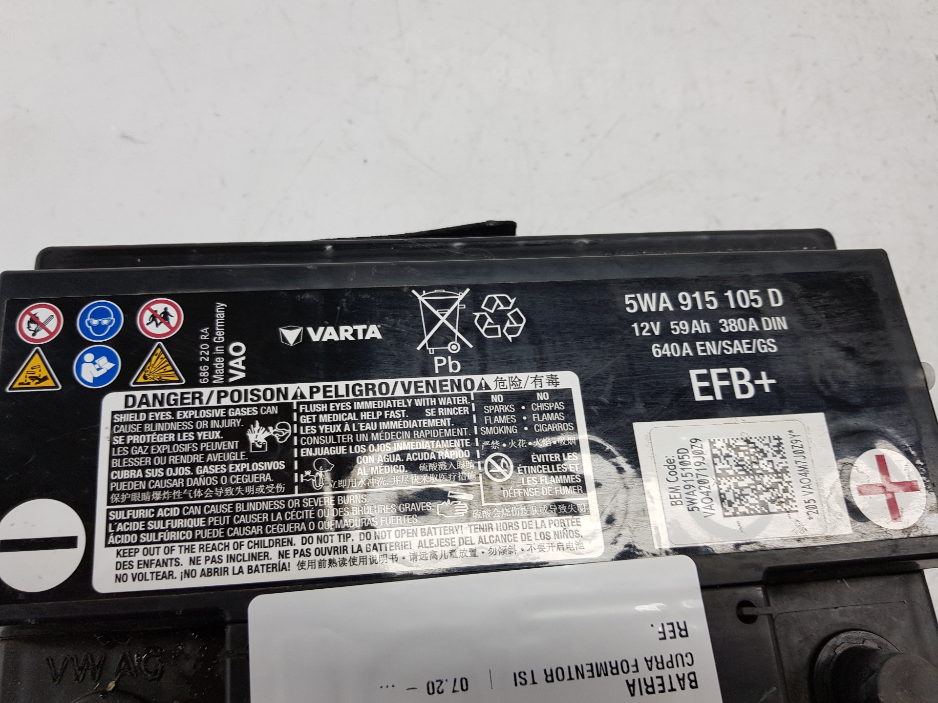 BATERIA CUPRA FORMENTOR 5WA915105D Referencia TELEPECAS: 10775601 03 Out 2023 |