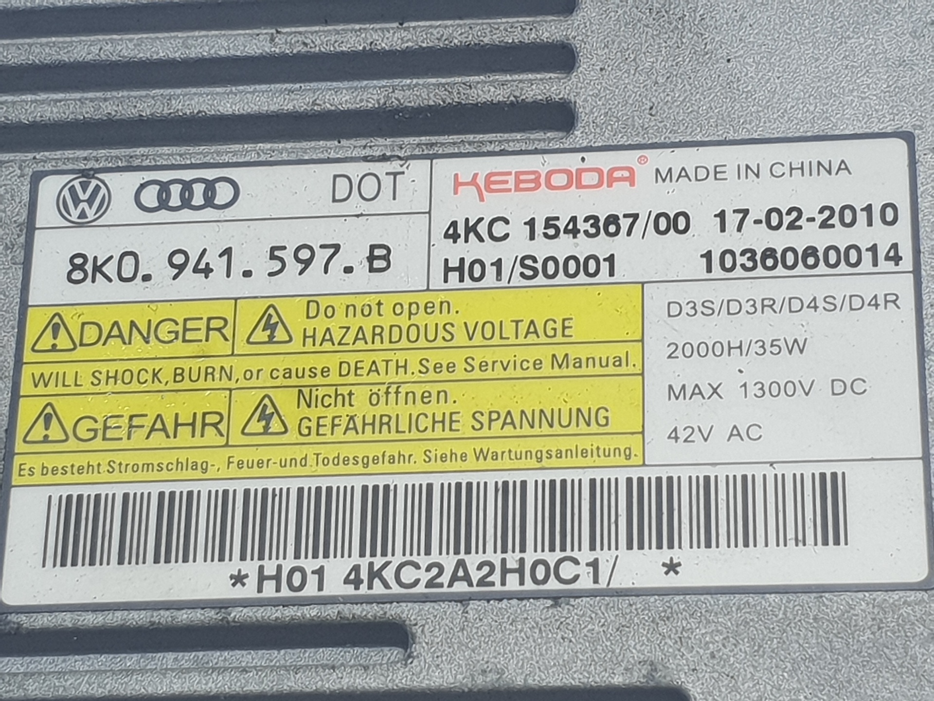 | Observaciones | 8K0941597B 4KC154367 |