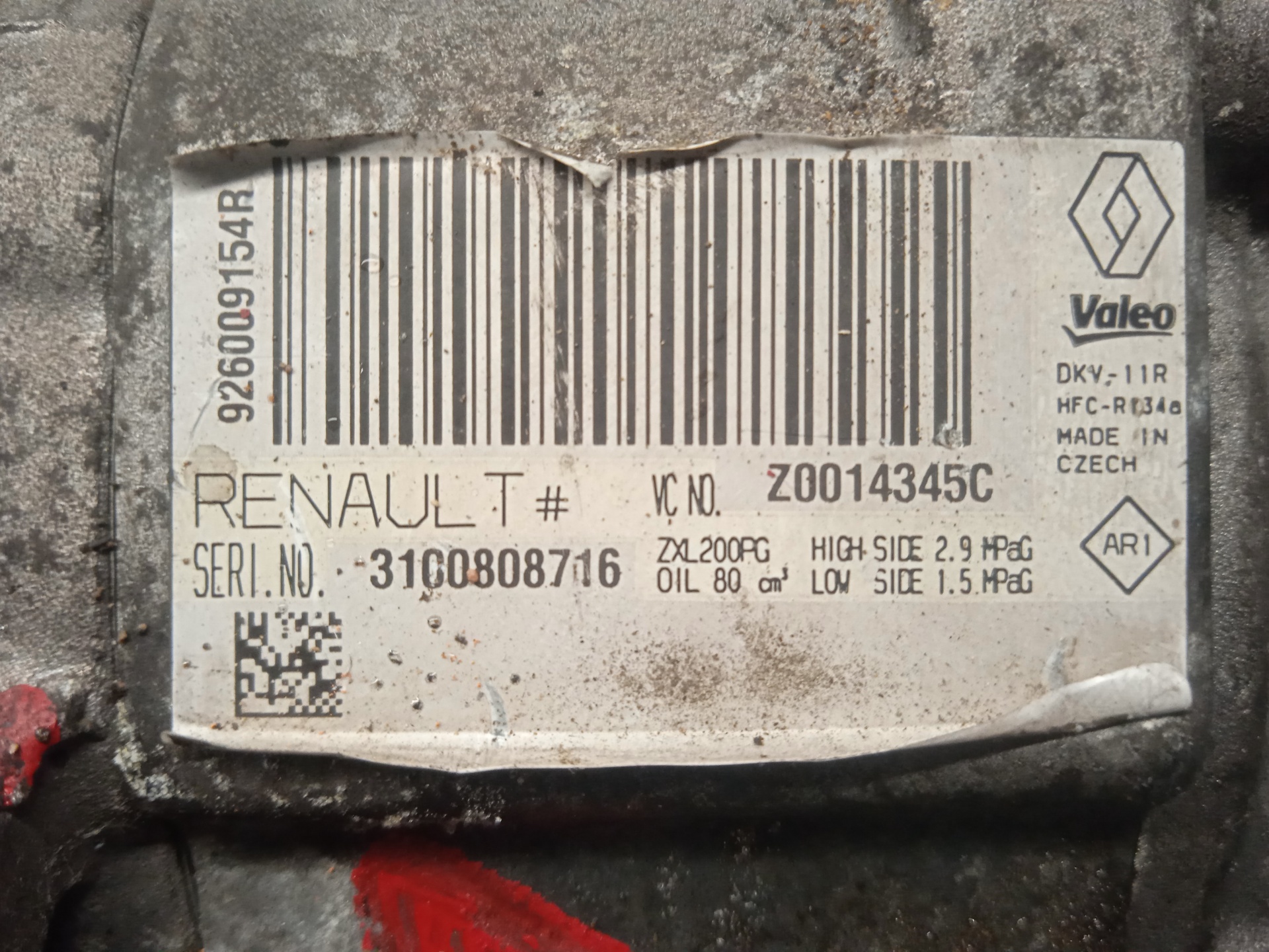 COMPRESOR AIRE ACONDICIONADO DACIA DUSTER 926009154R | Z0014345C | VALEO Referencia TELEPECAS: 12066339 20 Jan 2023 |