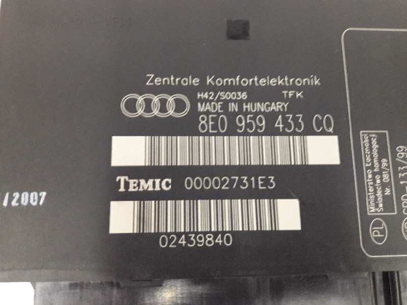 MODULO CONFORT AUDI A4 AVANT 8E0959433CQ | 00002731E3 Referencia TELEPECAS: 6463092 12 Nov 2018 |