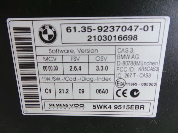 Modulo Confort BMW 1 Coupé (E82) | 06 - 13 61.35-9237047-01 | 5WK4 9515EBR | 6135923704701 / 5WK49515EBR Referencia TELEPECAS: 1168295 08 Jul 2024 |