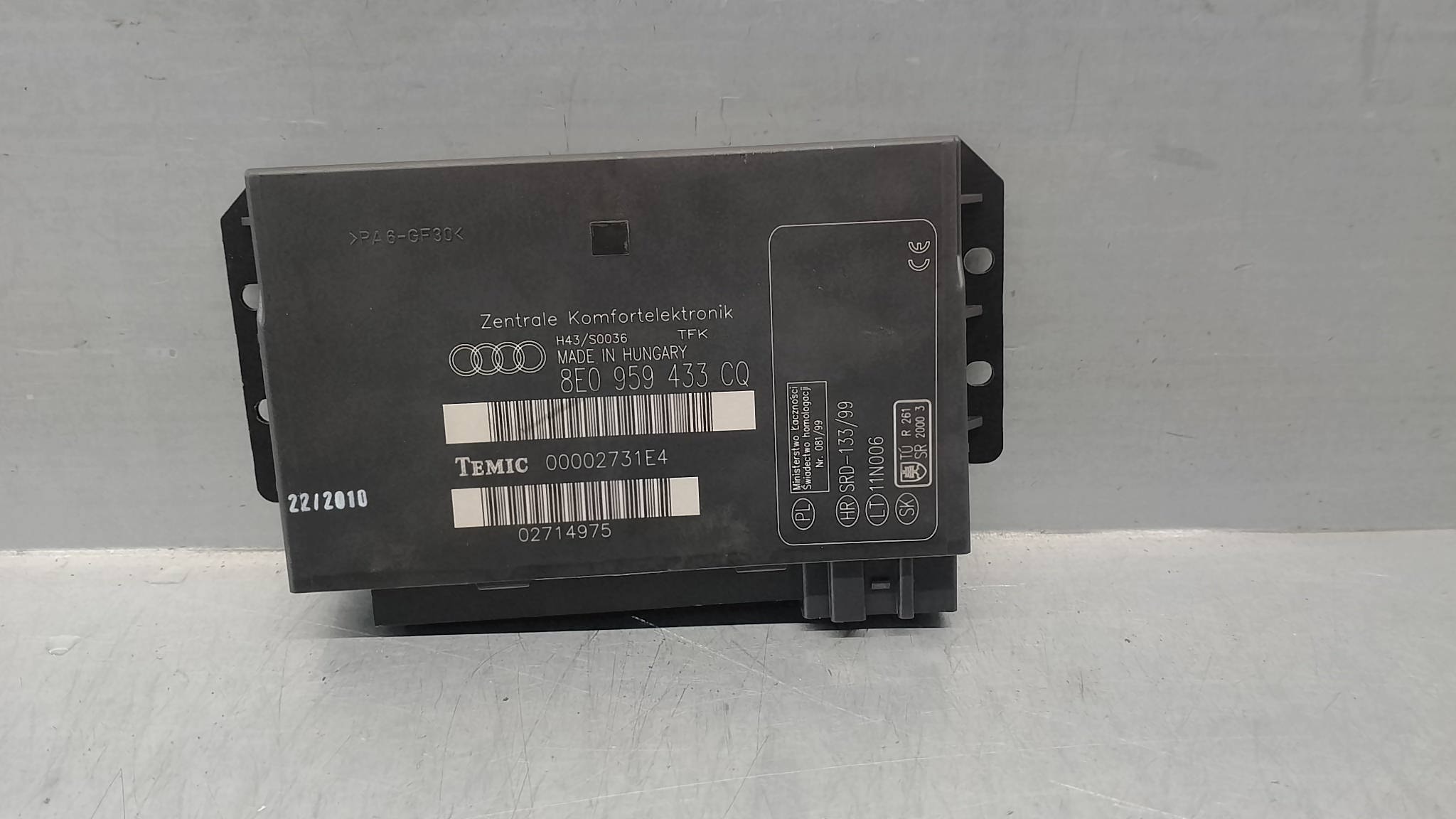 MODULO CONFORT SEAT EXEO ST (3R5)(2009>) 8E0959433CQ | 00002731E4 | TEMIC Referencia TELEPECAS: 12325549 07 Mar 2024 |