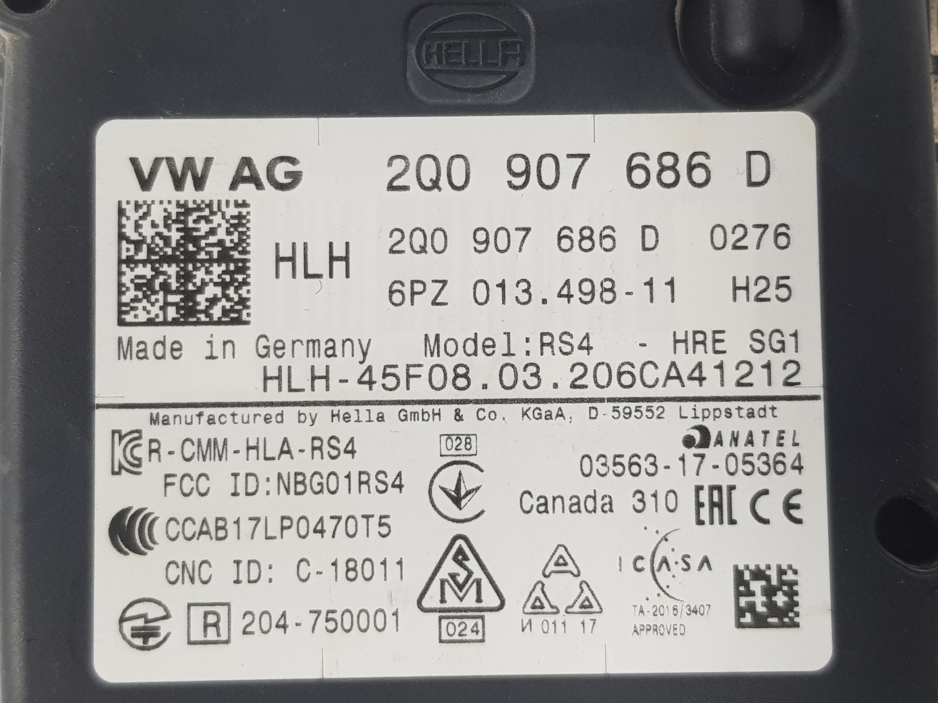 | Observaciones | RADAR 2Q0907686D 6PZ01349811 |