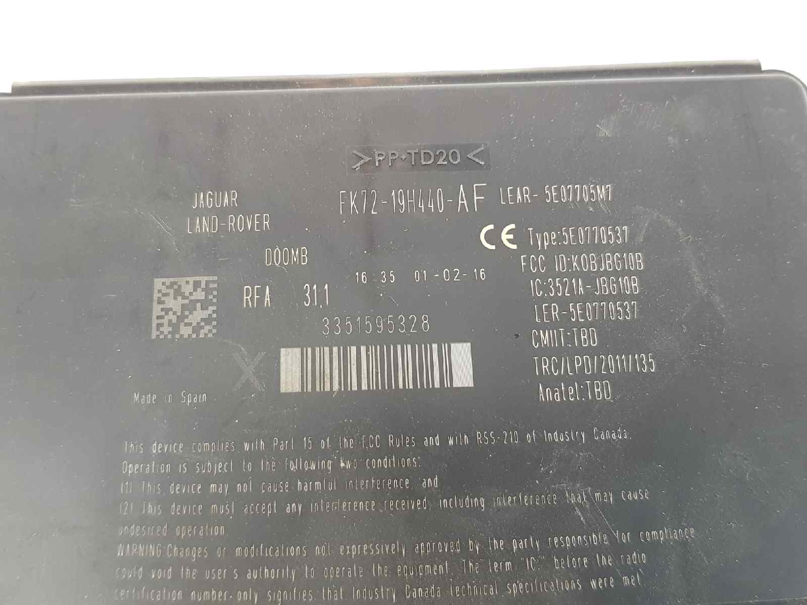 MODULO ELECTRONICO LAND ROVER EVOQUE LR080756 | FK7219H440AH Referencia TELEPECAS: 6853664 14 Jul 2020 |