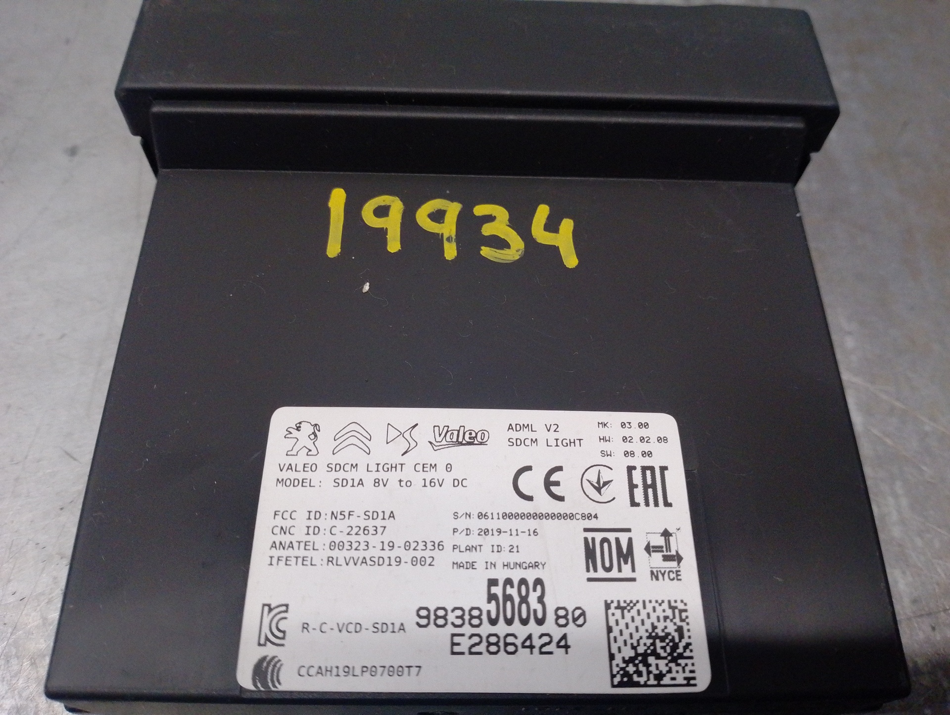 MODULO ELECTRONICO PEUGEOT 2008 (P1) 98385683 | E286424 | VALEO Referencia TELEPECAS: 12240730 23 Dez 2023 |