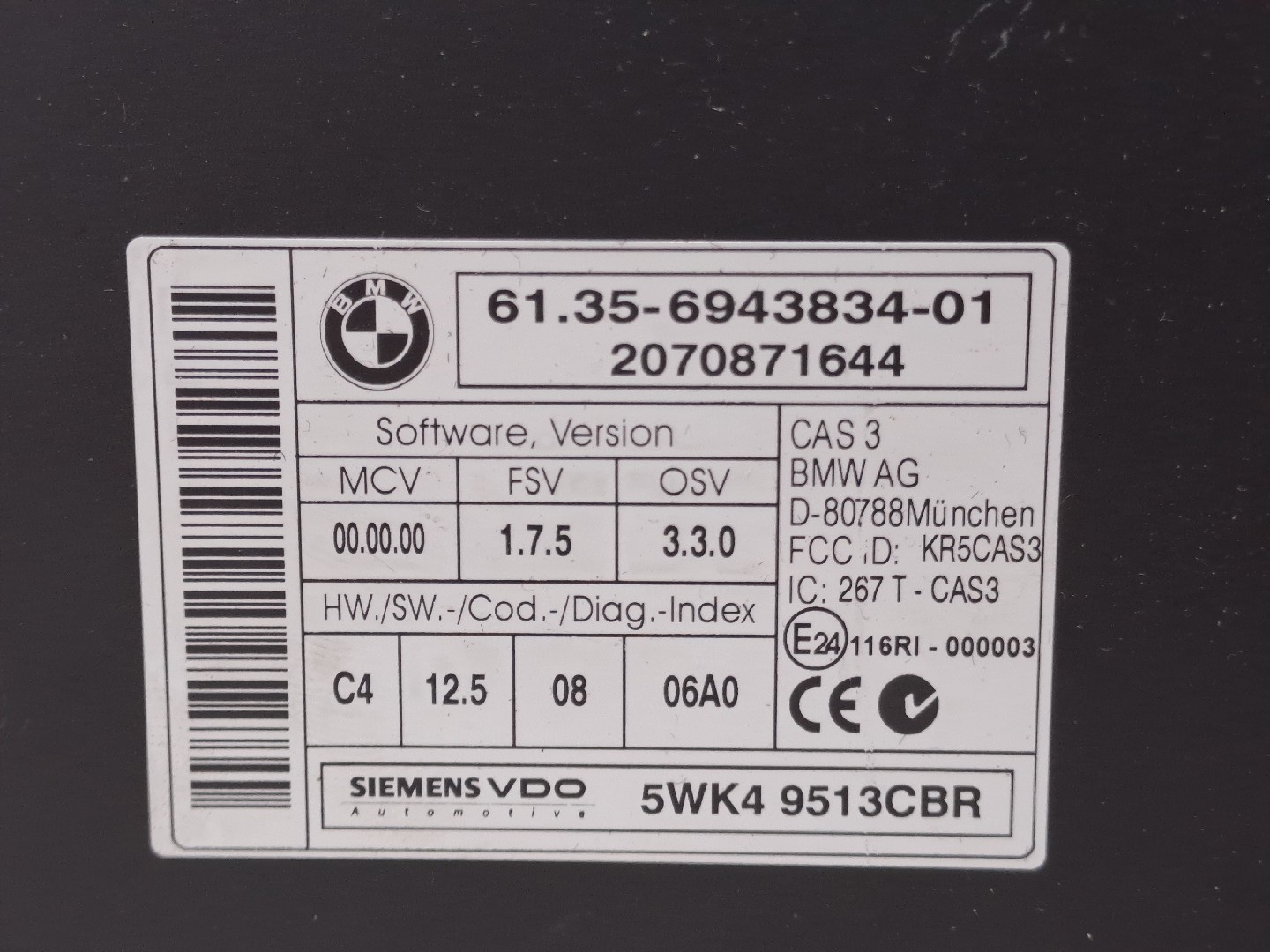 Electronic Module BMW 3 Coupé (E92) [01.2005 - 12.2013] 6135694383401 | Módulo CAS | SIEMENS VDO Referencia TELEPECAS: 11397542 ID Stock: 5067929 05 Nov 2024 |