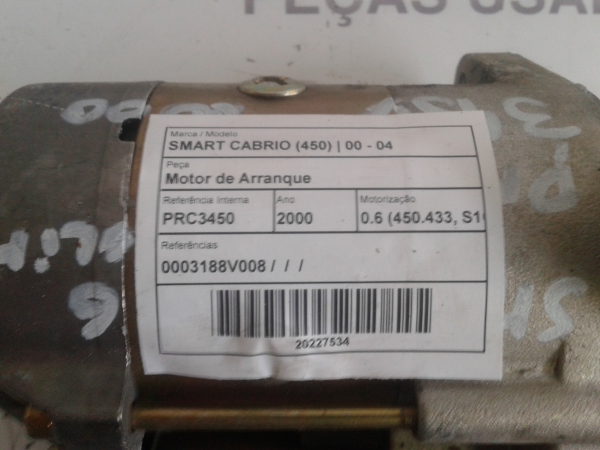Motor de Arranque SMART CABRIO (450) [03.2000 - 01.2004] A0051512601 | 0003188V008 Referencia TELEPECAS: 720296 ID Stock: 20227534 28 Set 2024 |