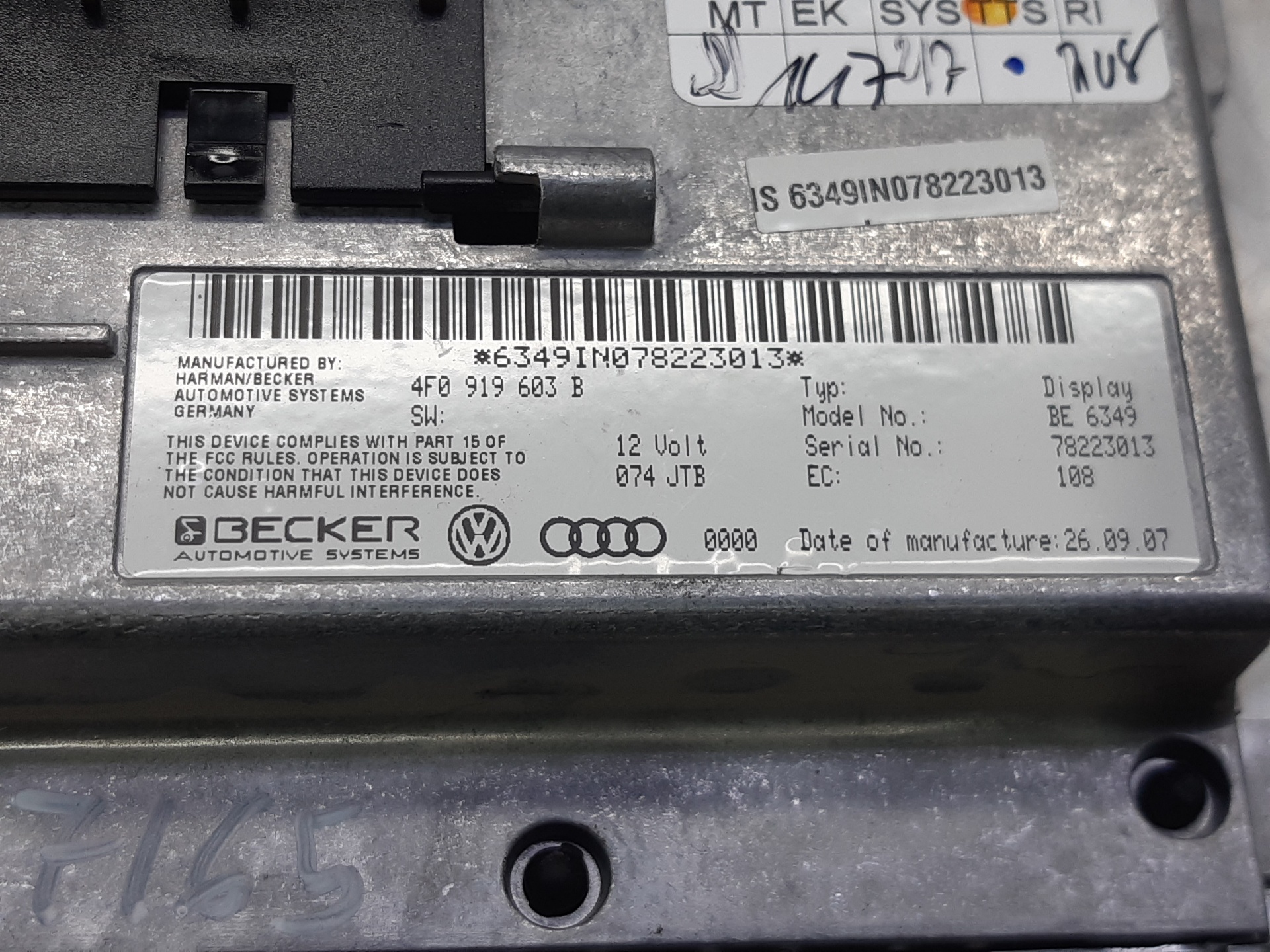 PANTALLA MULTIFUNCION AUDI Q7 4F0919603B Referencia TELEPECAS: 7923439 23 Mar 2022 |