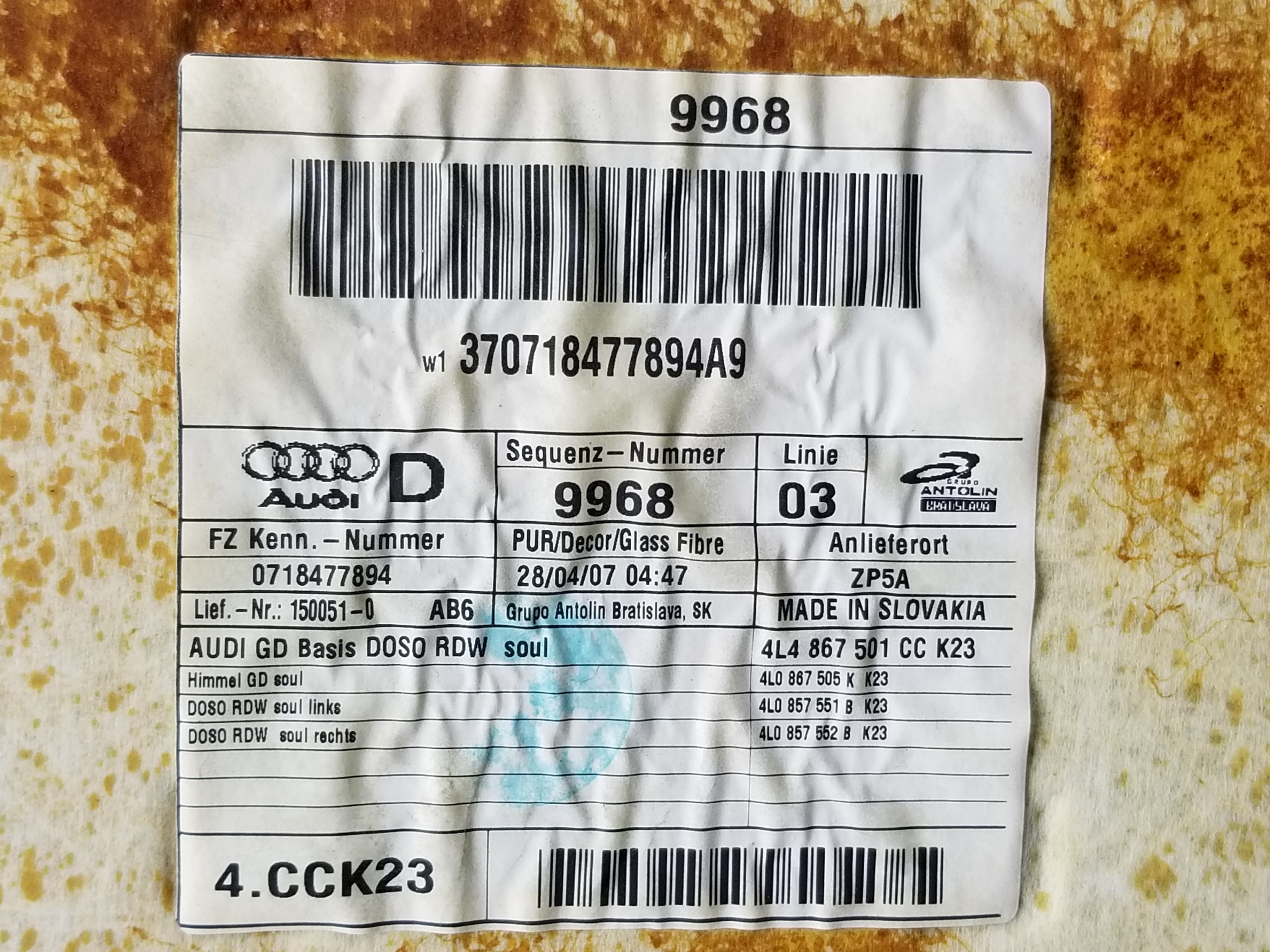 TECHO INTERIOR AUDI Q7 4L0867505K | 4L0867505T Referencia TELEPECAS: 6648554 17 Nov 2021 |