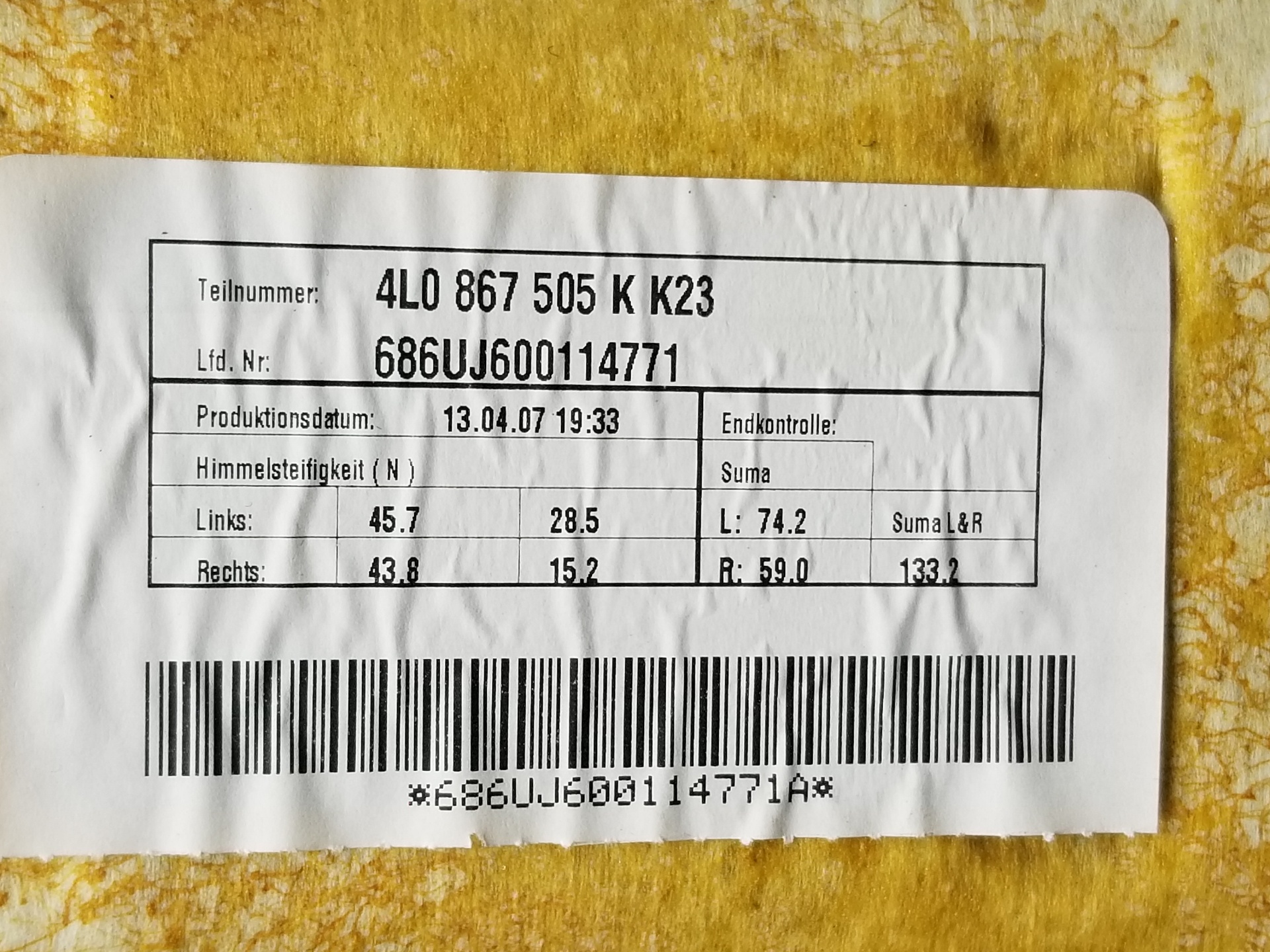 | Observaciones | 370718477894A9, 9968, 0718477894, 4L4867501CCK23, 4L0867505K, 4L0857551B, 4L0857552B, 686UJ600074398, 686UJ6000743961 |