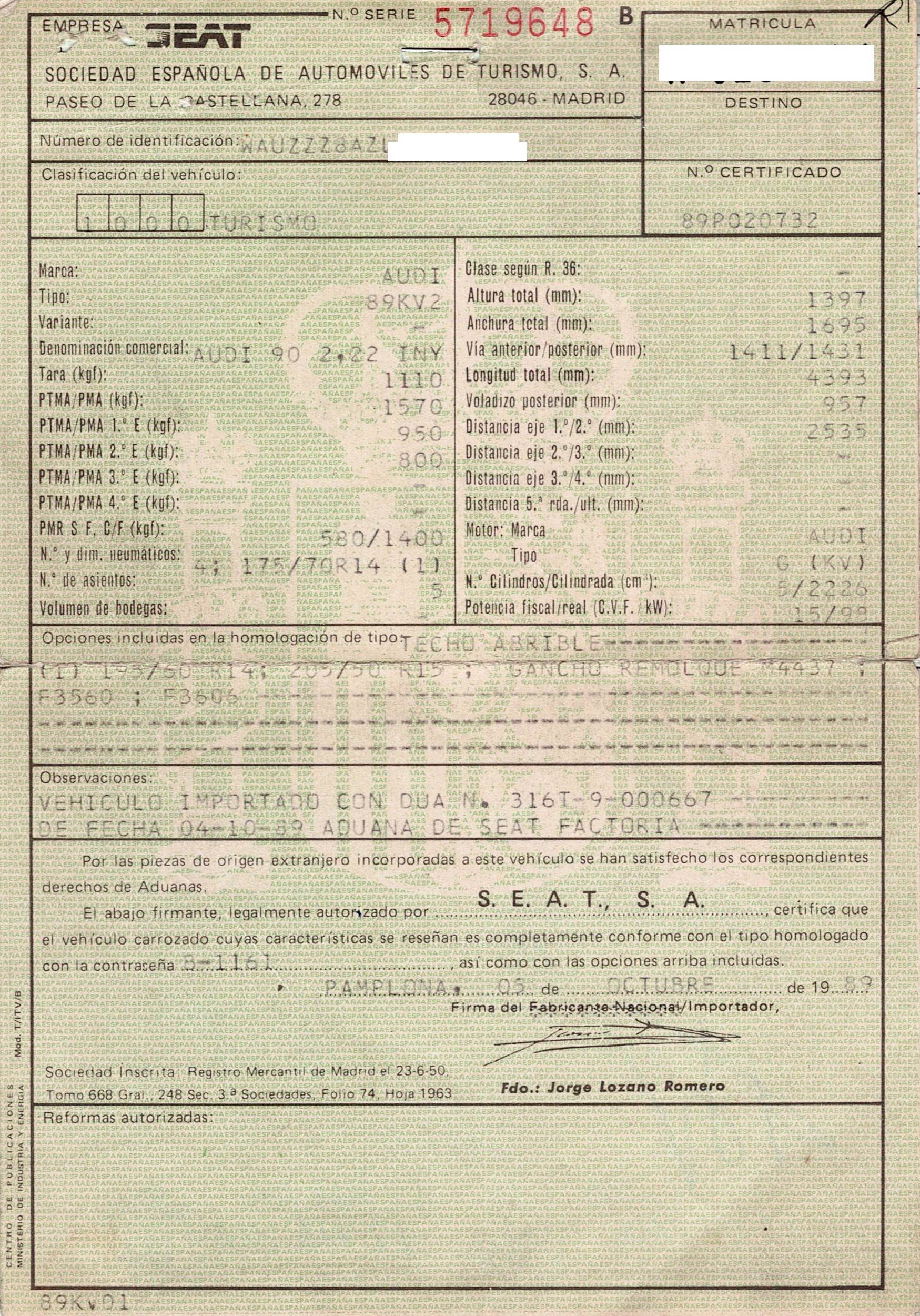 | Fecha Matrícula | 1989-10-05 |