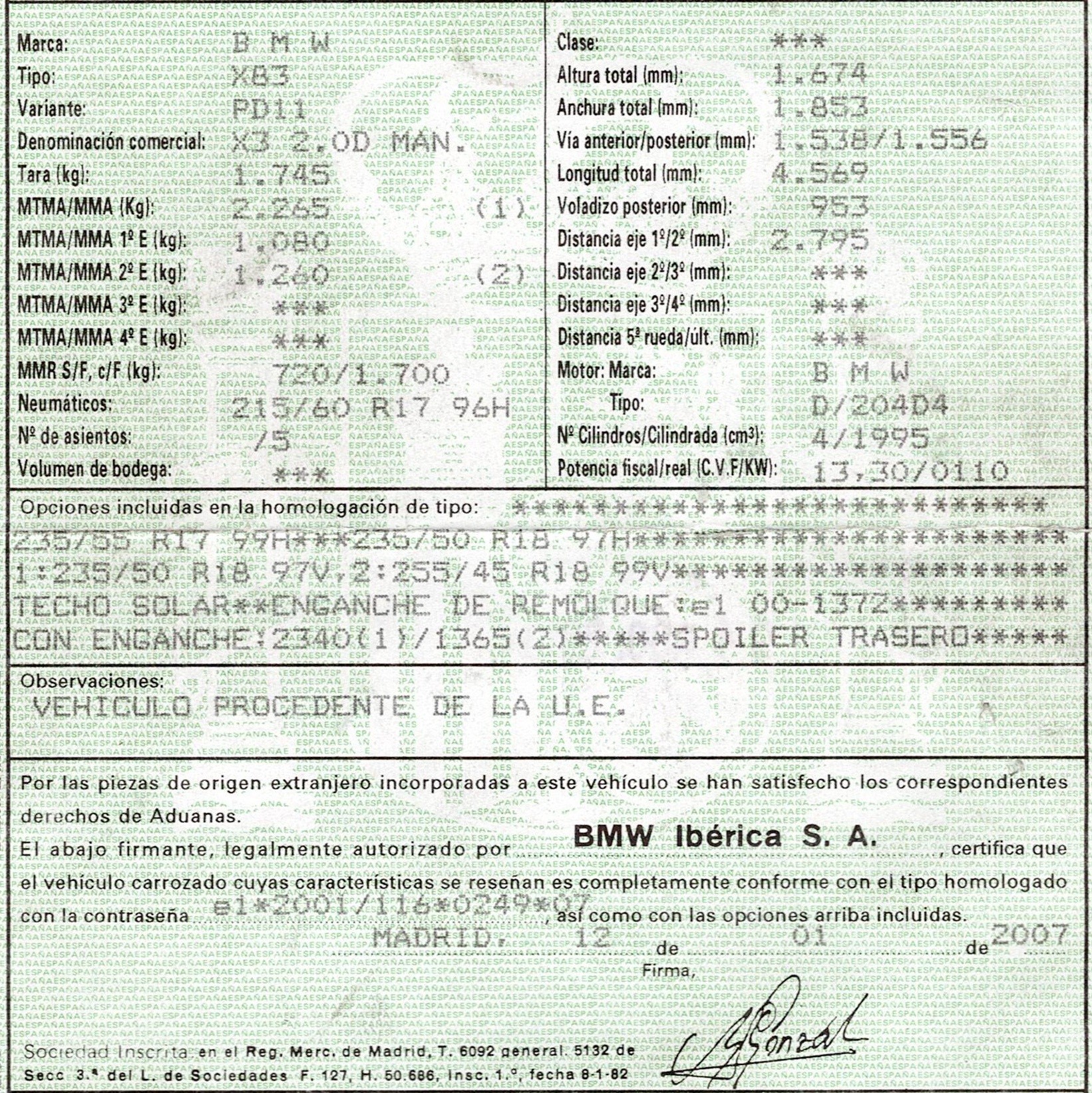 | Fecha Matrícula | 2007-01-12 |
