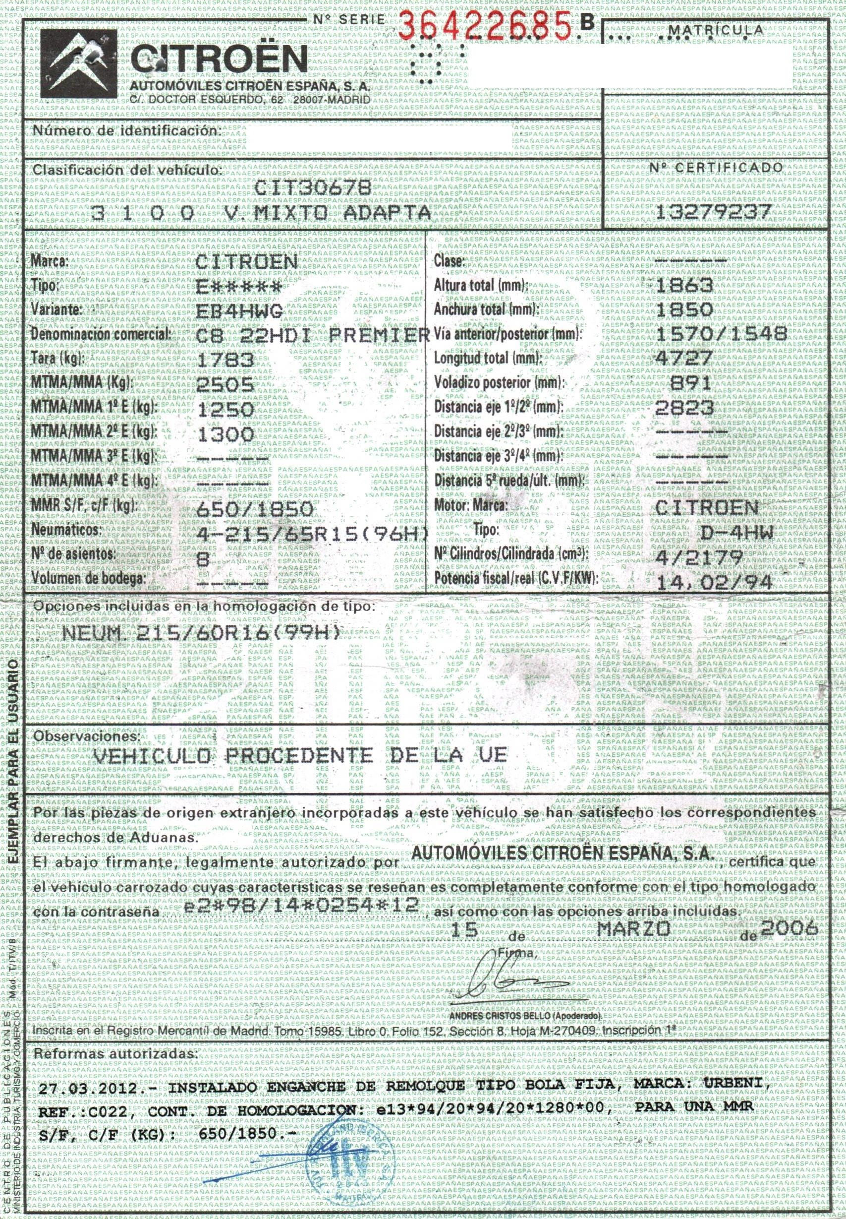 | Fecha Matrícula | 2006-03-15 |