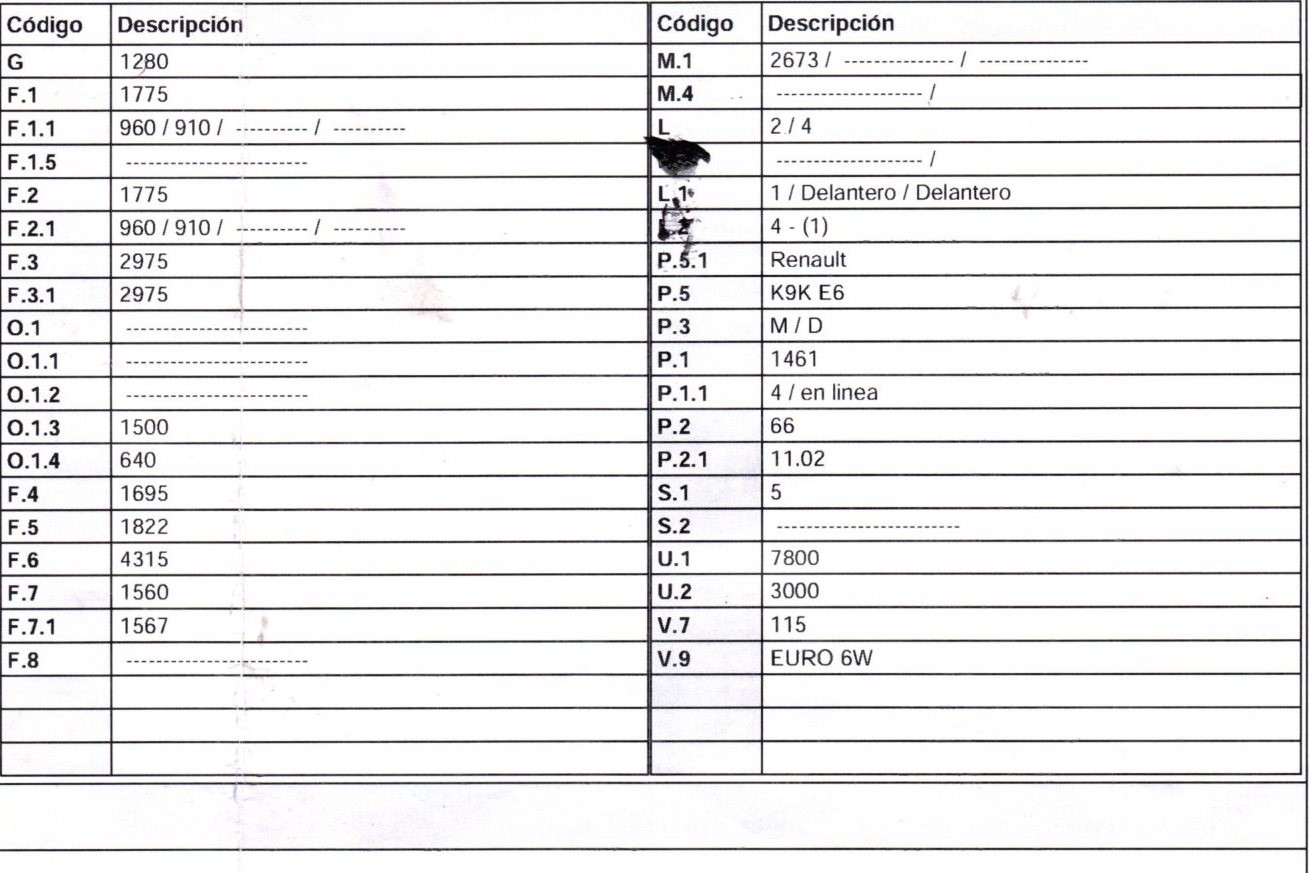 | Código de motor | K9KE626 |