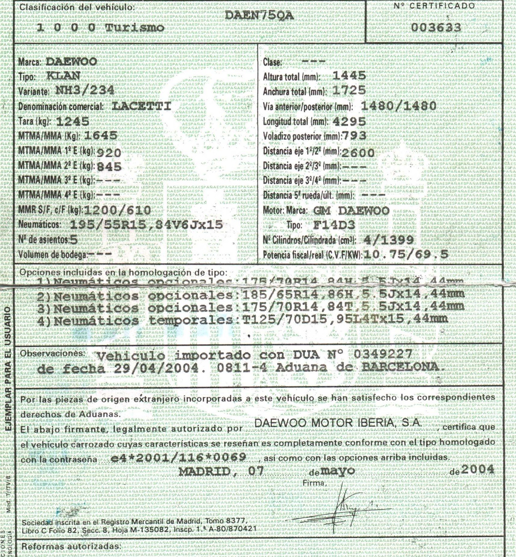 | Fecha Matrícula | 2004-05-07 |