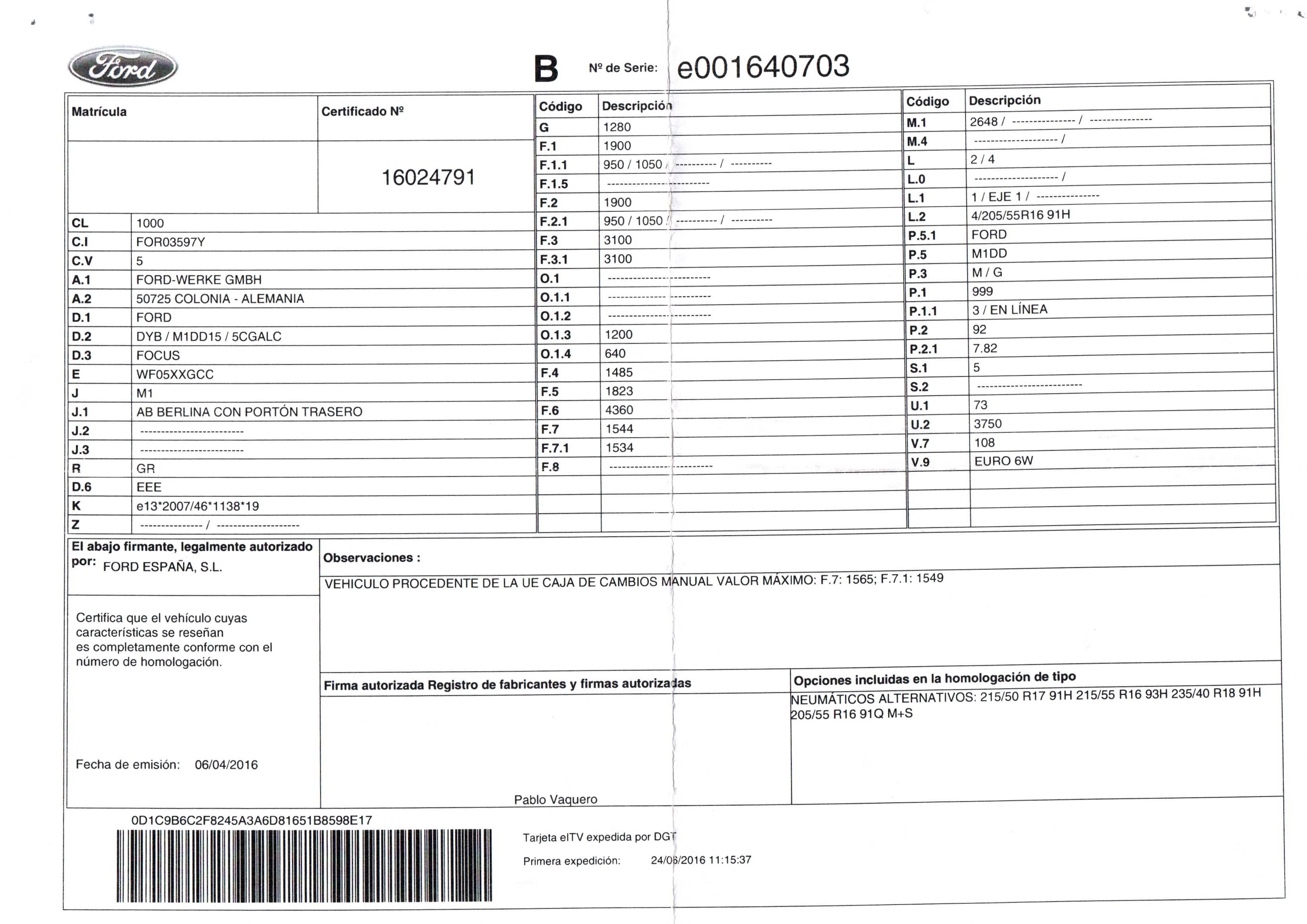 | Fecha Matrícula | 2016-04-06 |
