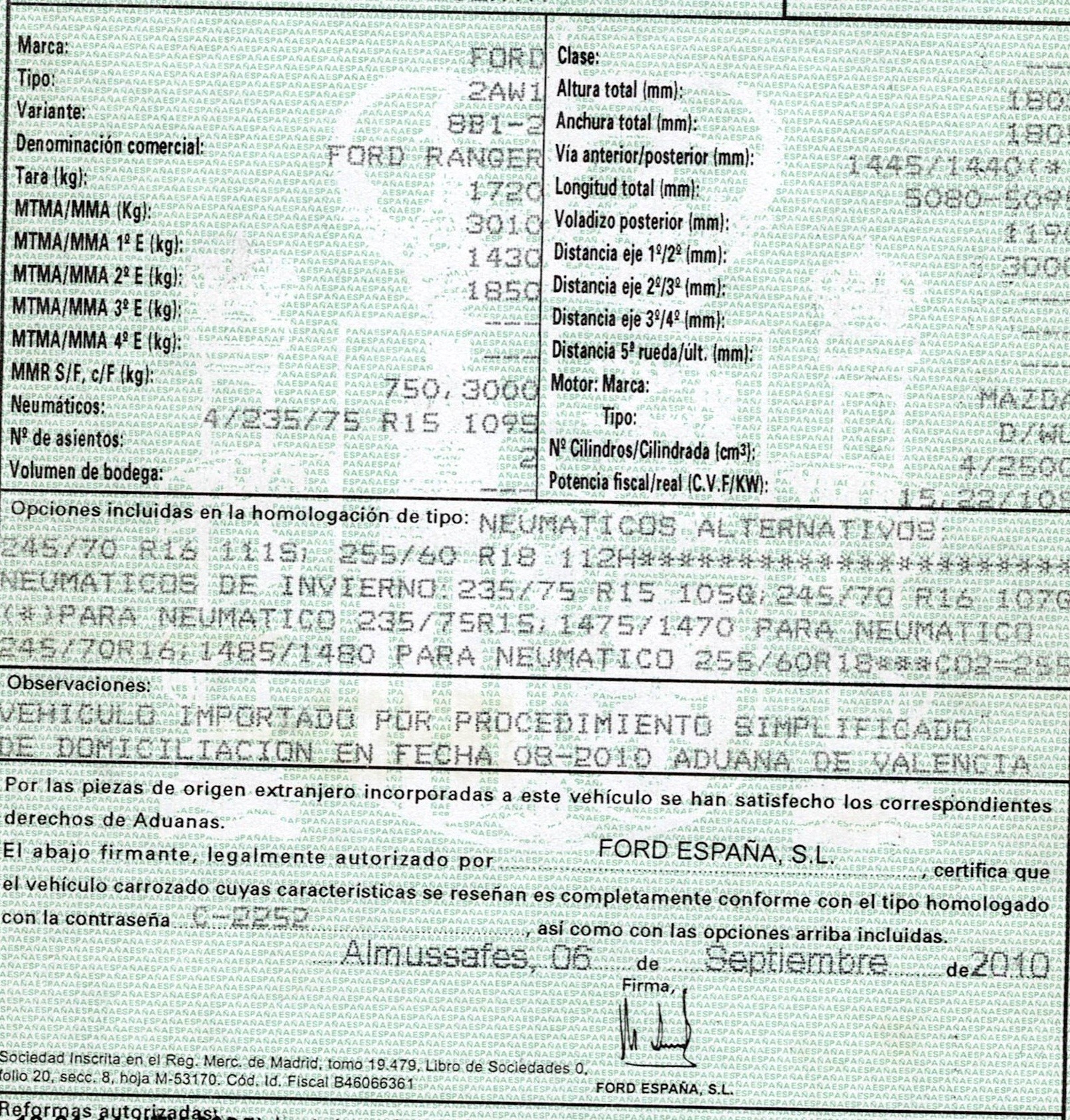 | Fecha Matrícula | 2010-09-06 |
