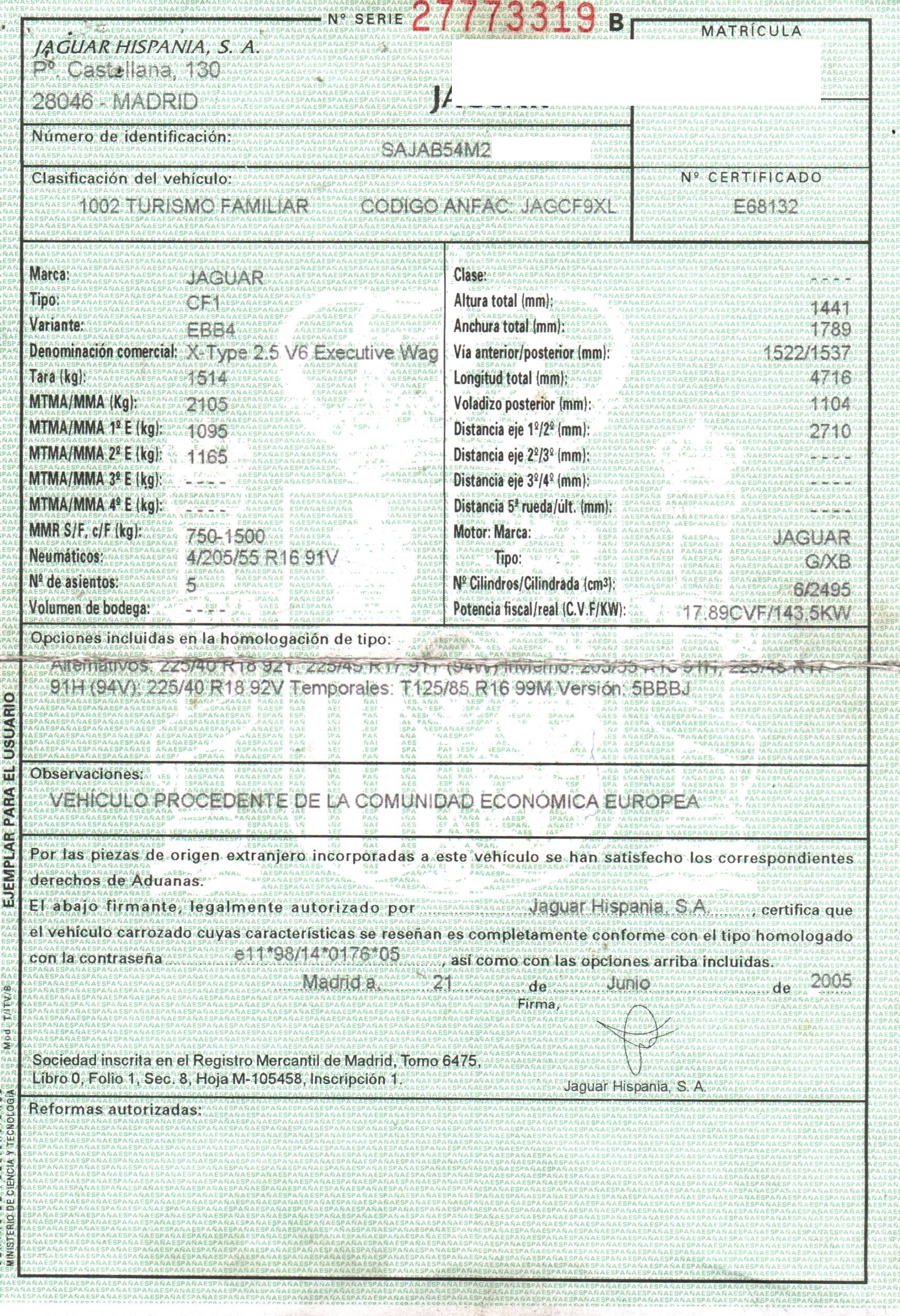 | Fecha Matrícula | 2005-06-21 |