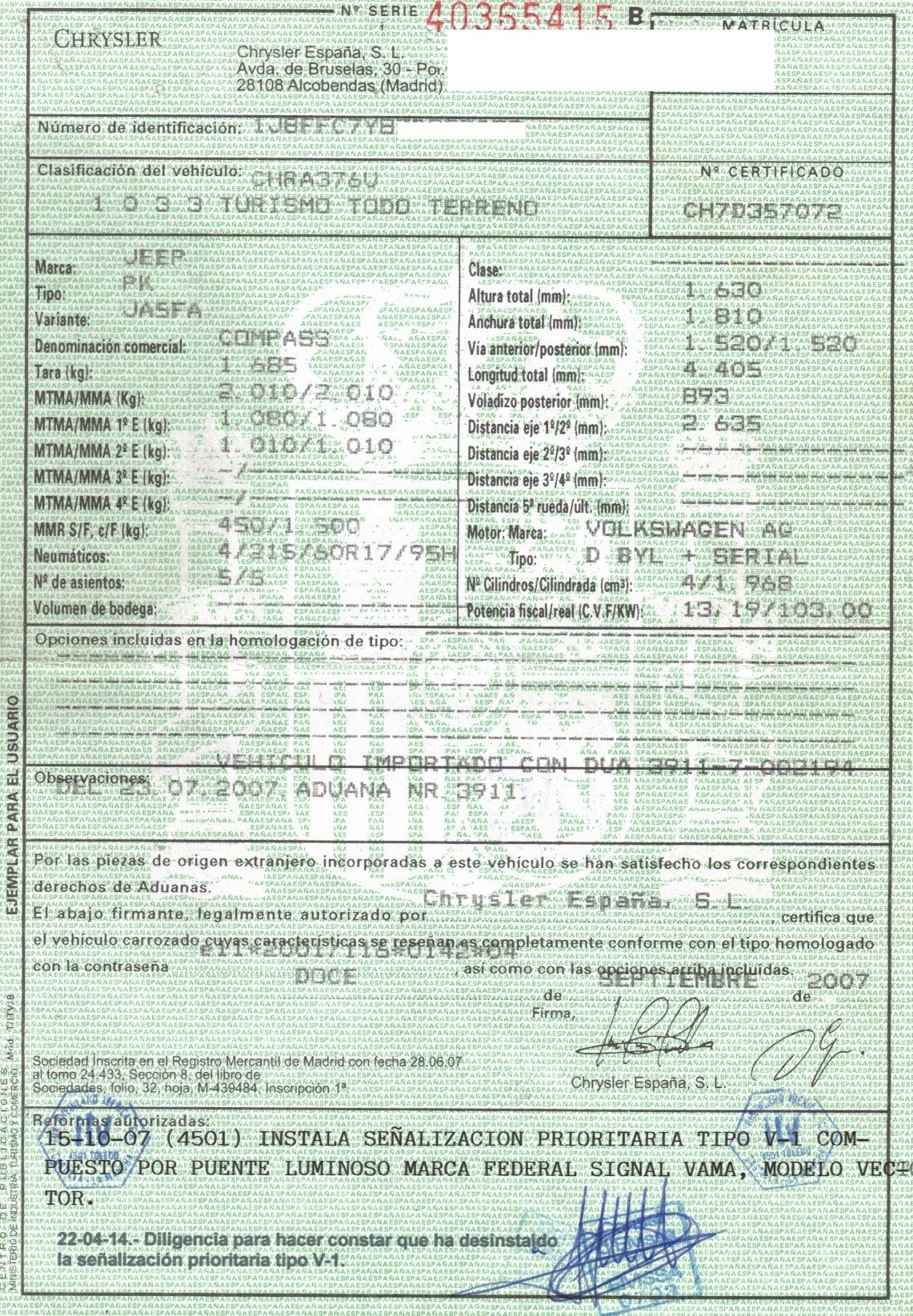 | Fecha Matrícula | 2007-09-12 |