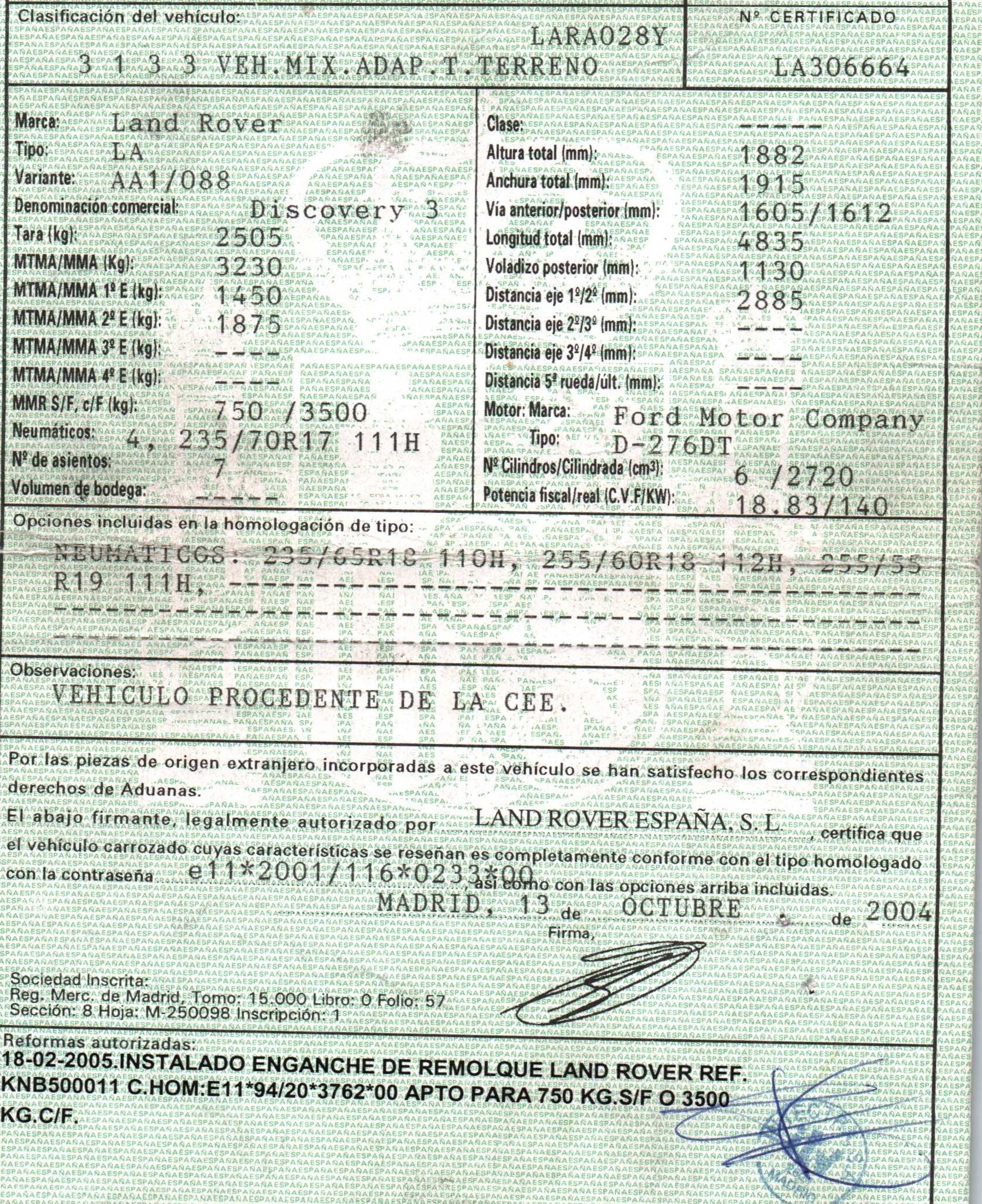 | Fecha Matrícula | 2004-10-13 |