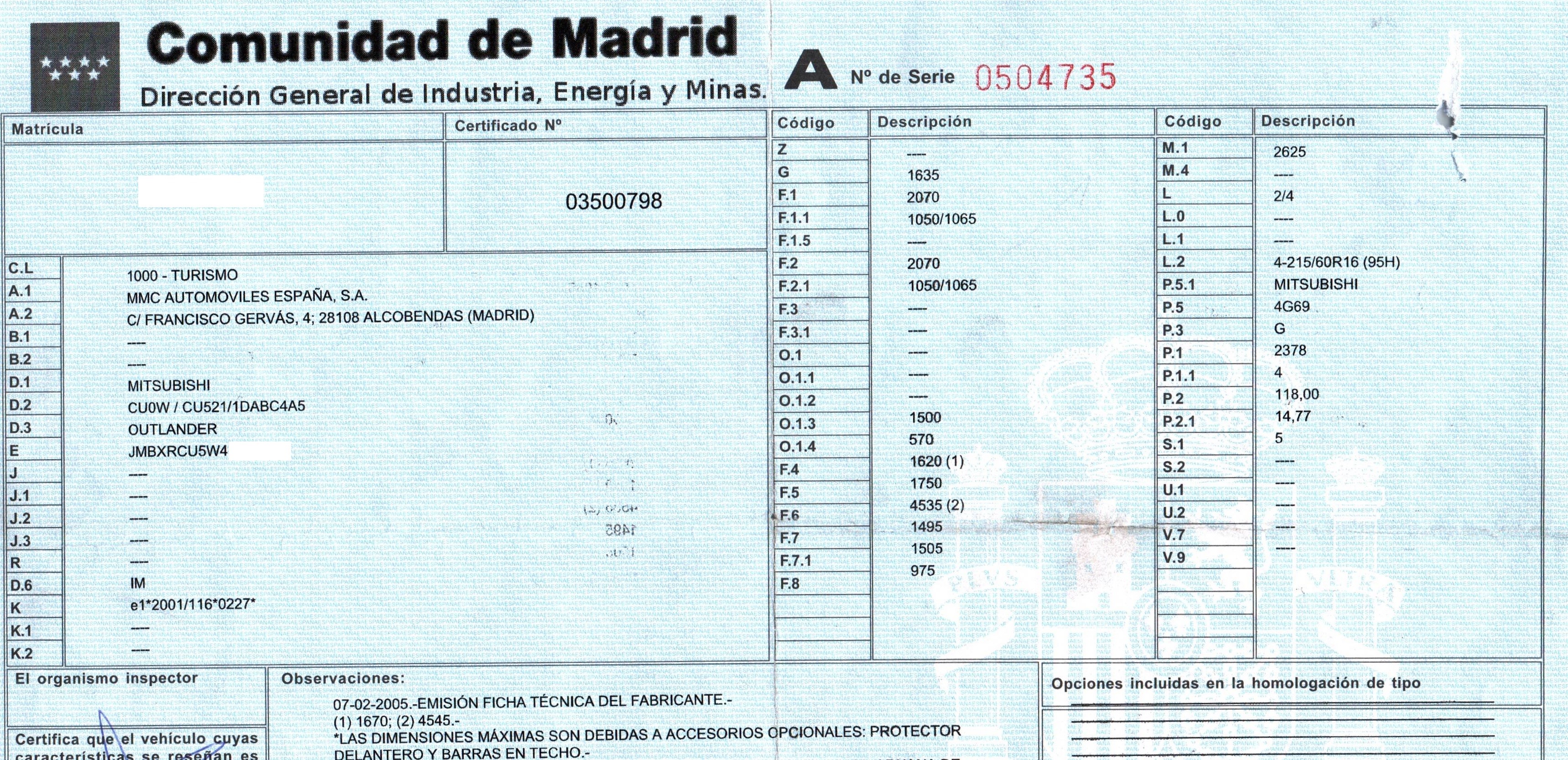 | Fecha Matrícula | 2005-02-07 |