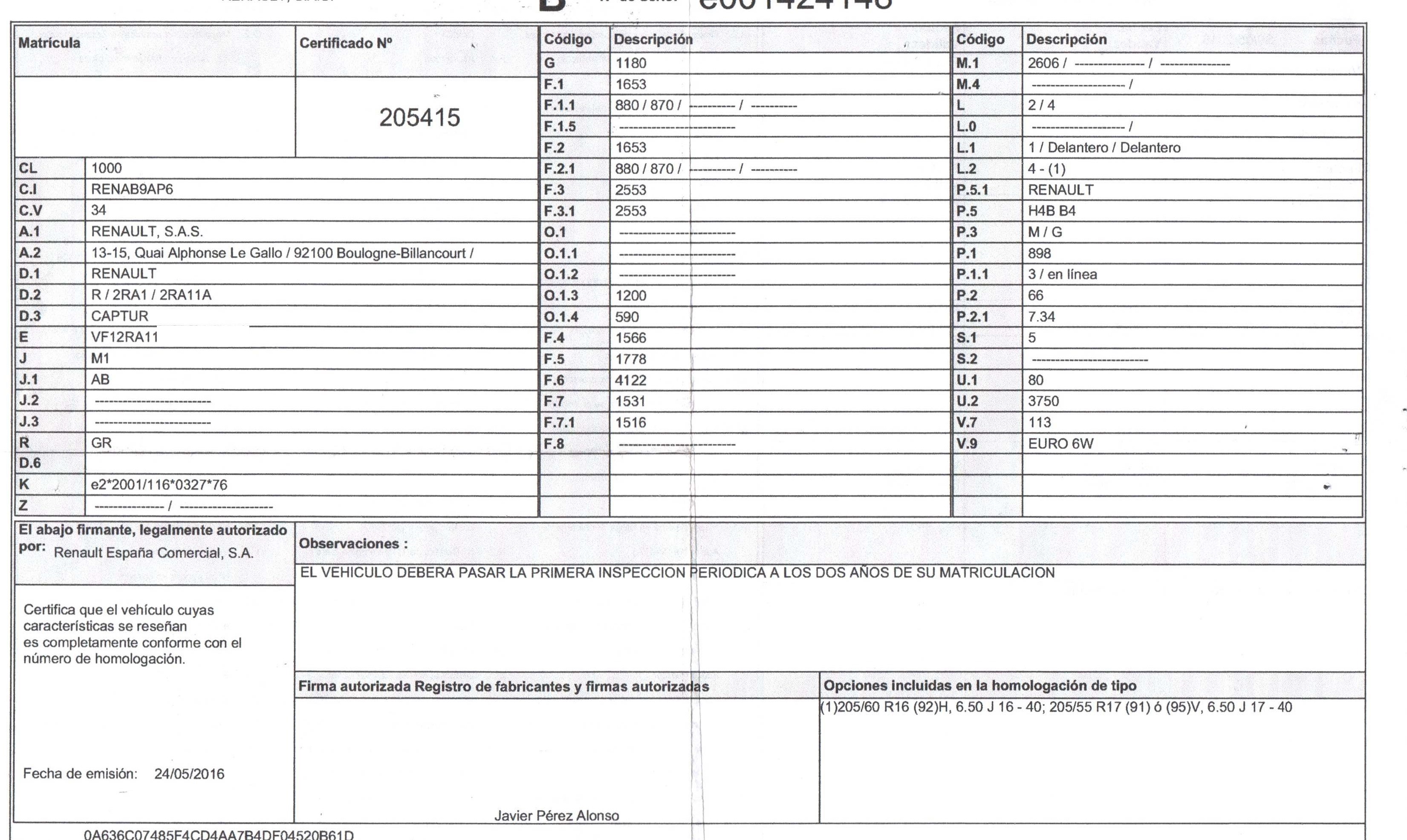 | Fecha Matrícula | 2016-05-24 |