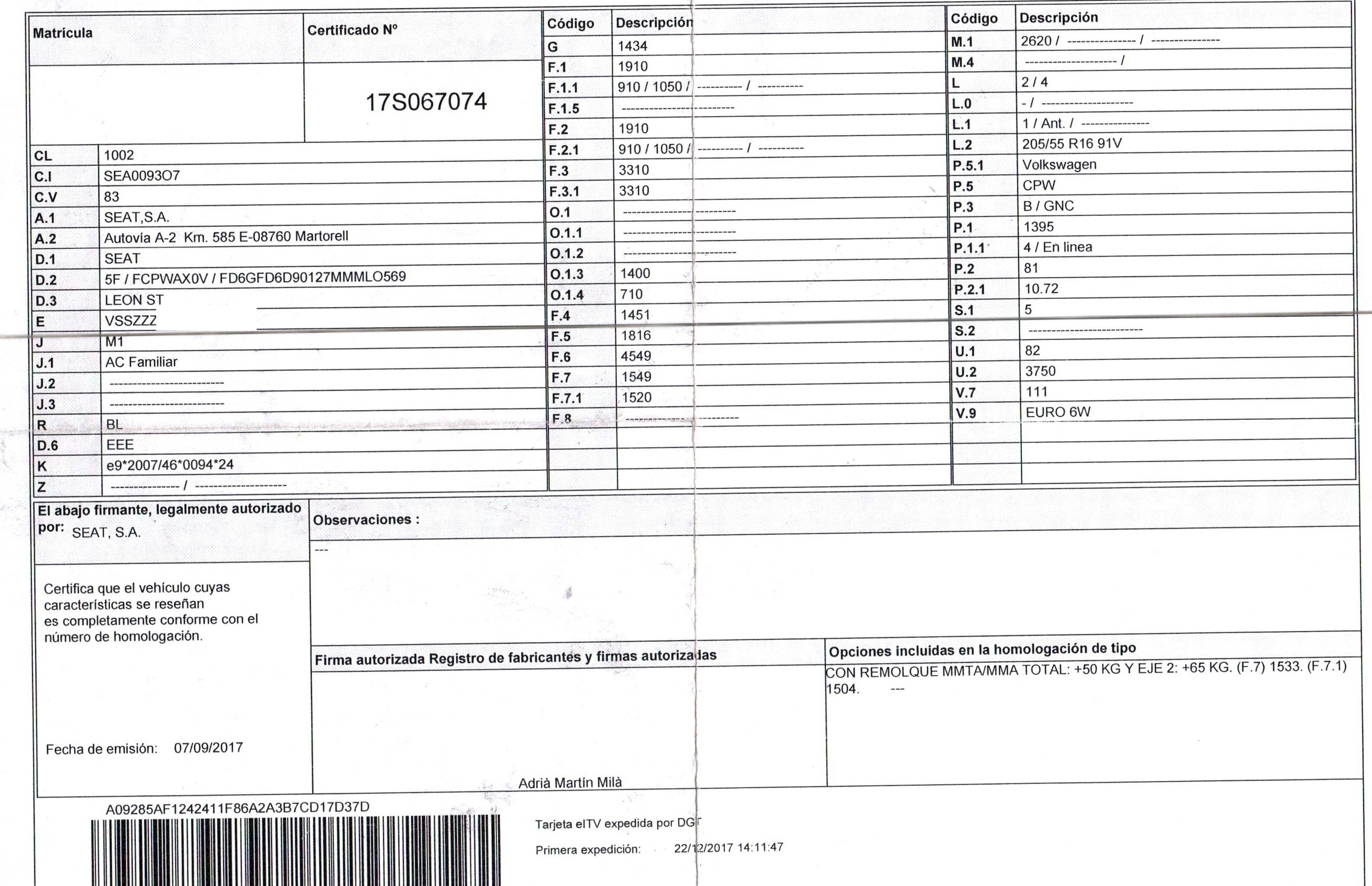 | Fecha Matrícula | 2017-09-07 |