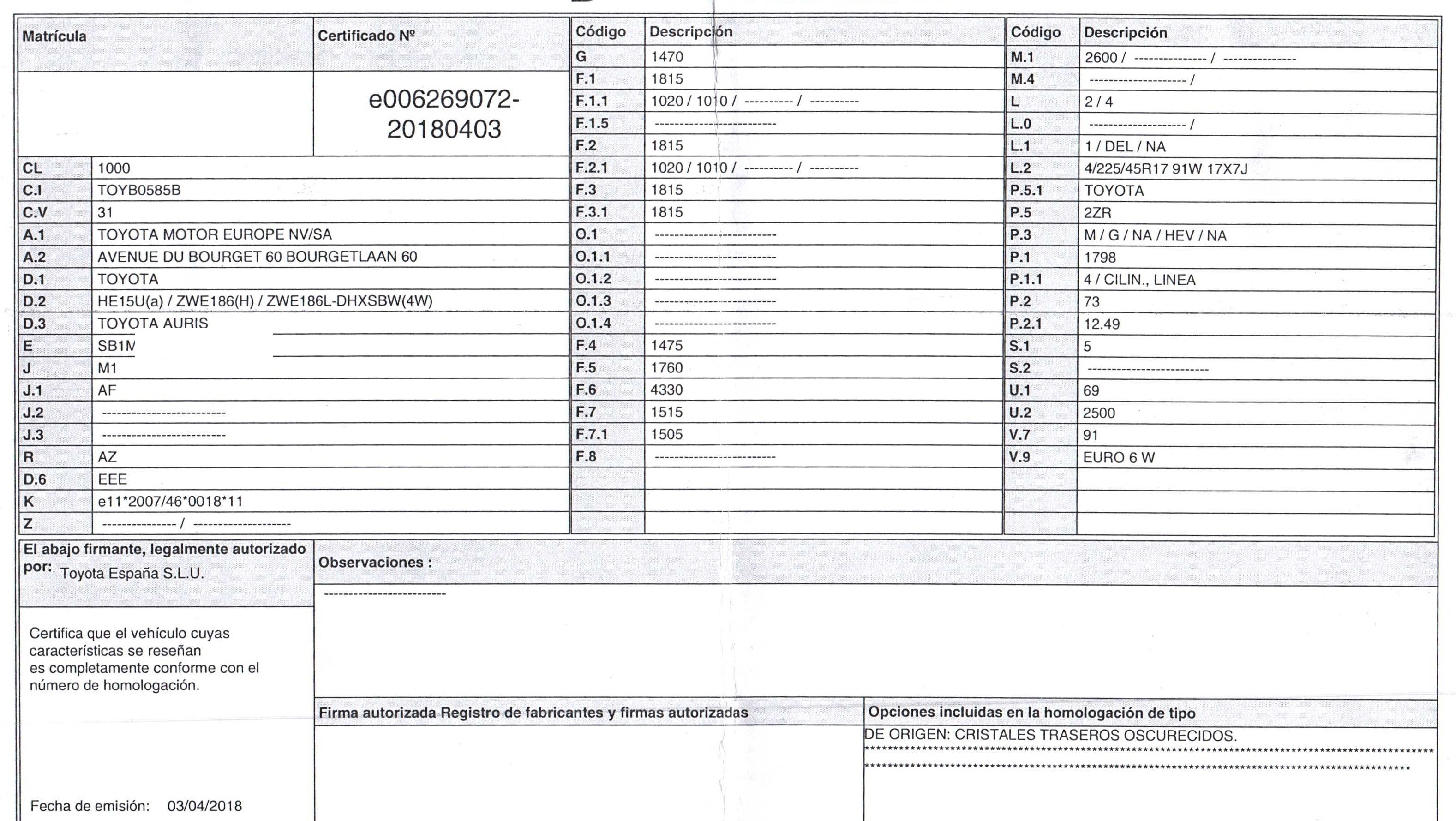 | Fecha Matrícula | 2018-04-03 |