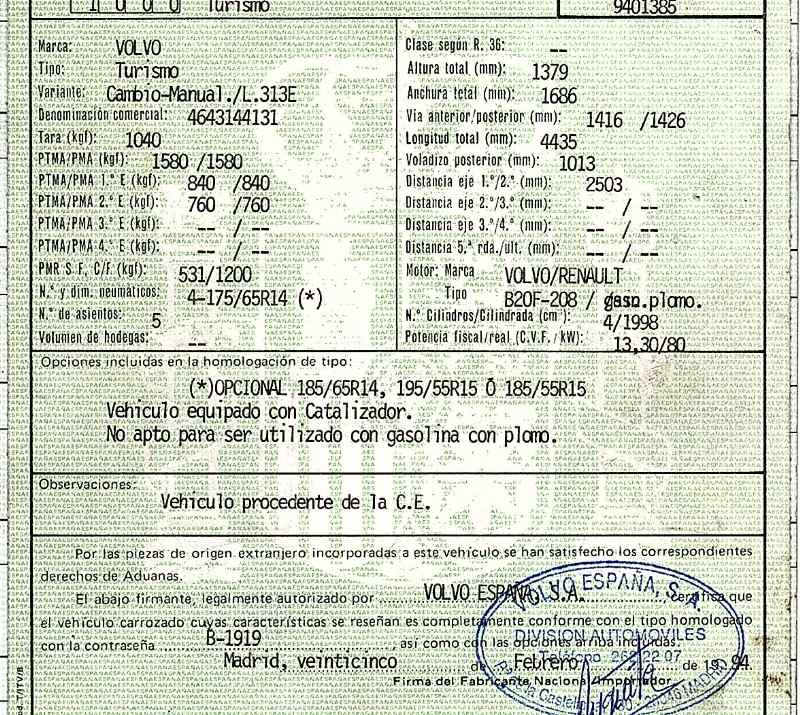 | Fecha Matrícula | 1994-02-25 |