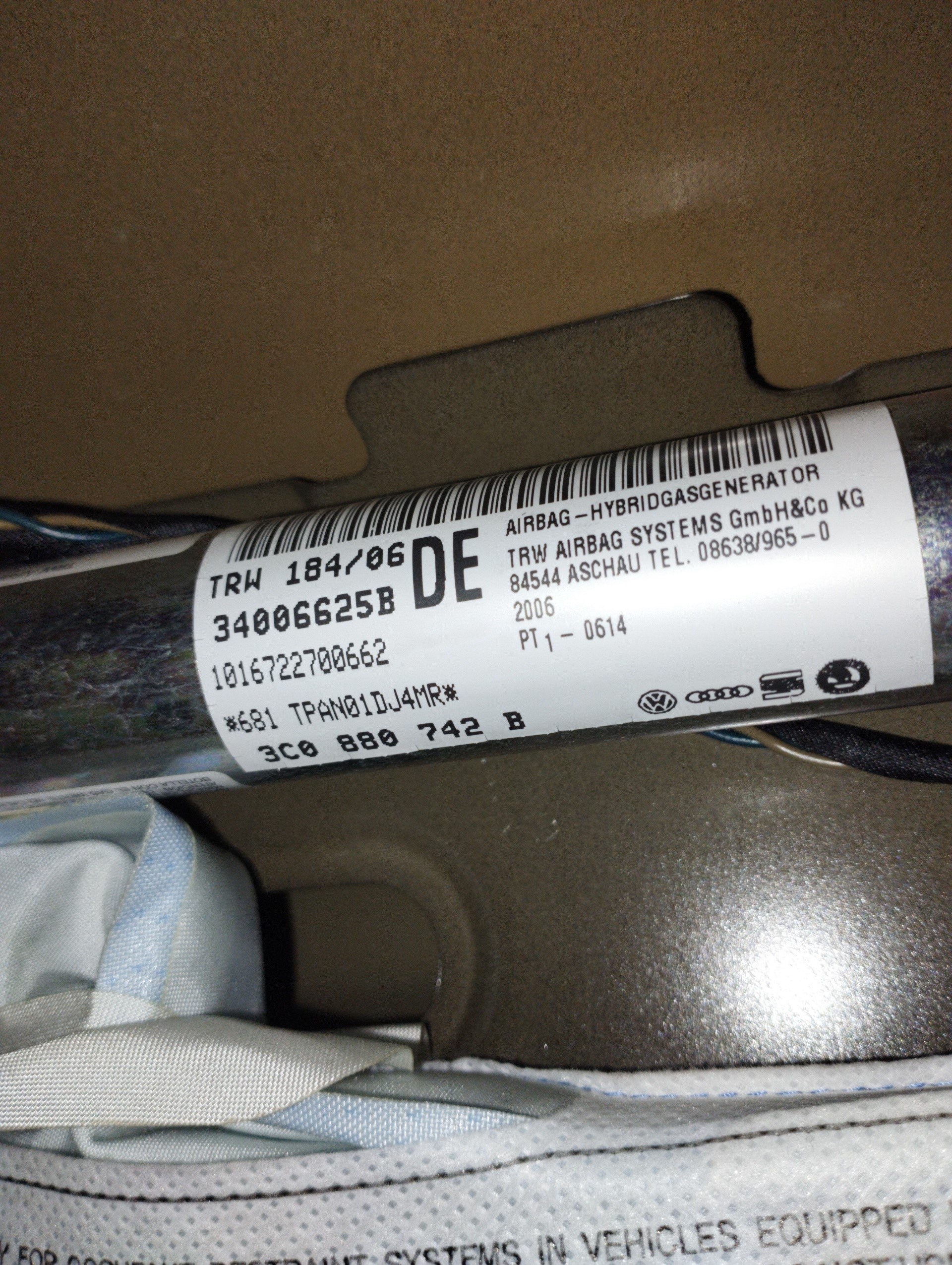 AIRBAG CORTINA DELANTERO DERECHO 30 €
